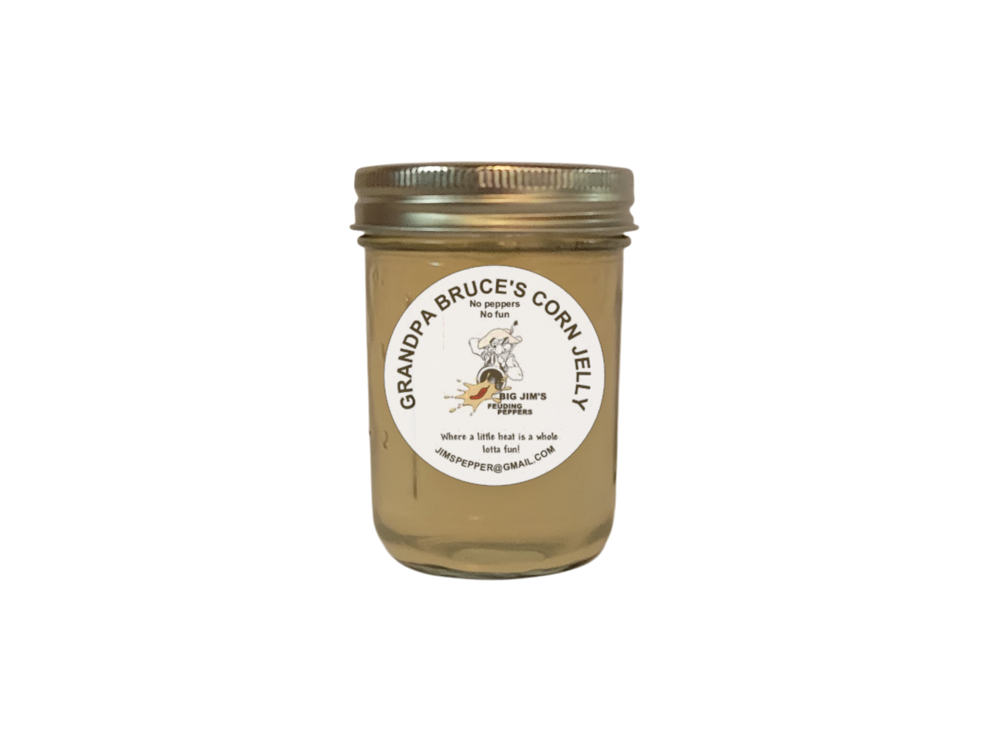 Made from sweet corn picked on Grandpa Bruce’s farm, Grandpa Bruce's Corn Jelly carries the spirit of the prairie and the wisdom of those who waste nothing. Known in the history of the Great Plains as "prairie honey," this recipe dates back to the 1870s when early settlers turned discarded corn cobs into a sweet, amber spread. With a smooth, honey-like flavor, it is perfect on biscuits, toast, meats, or pancakes. A true nod to heartland ingenuity and Grandpa Bruce’s favorite saying: "waste not, want not."